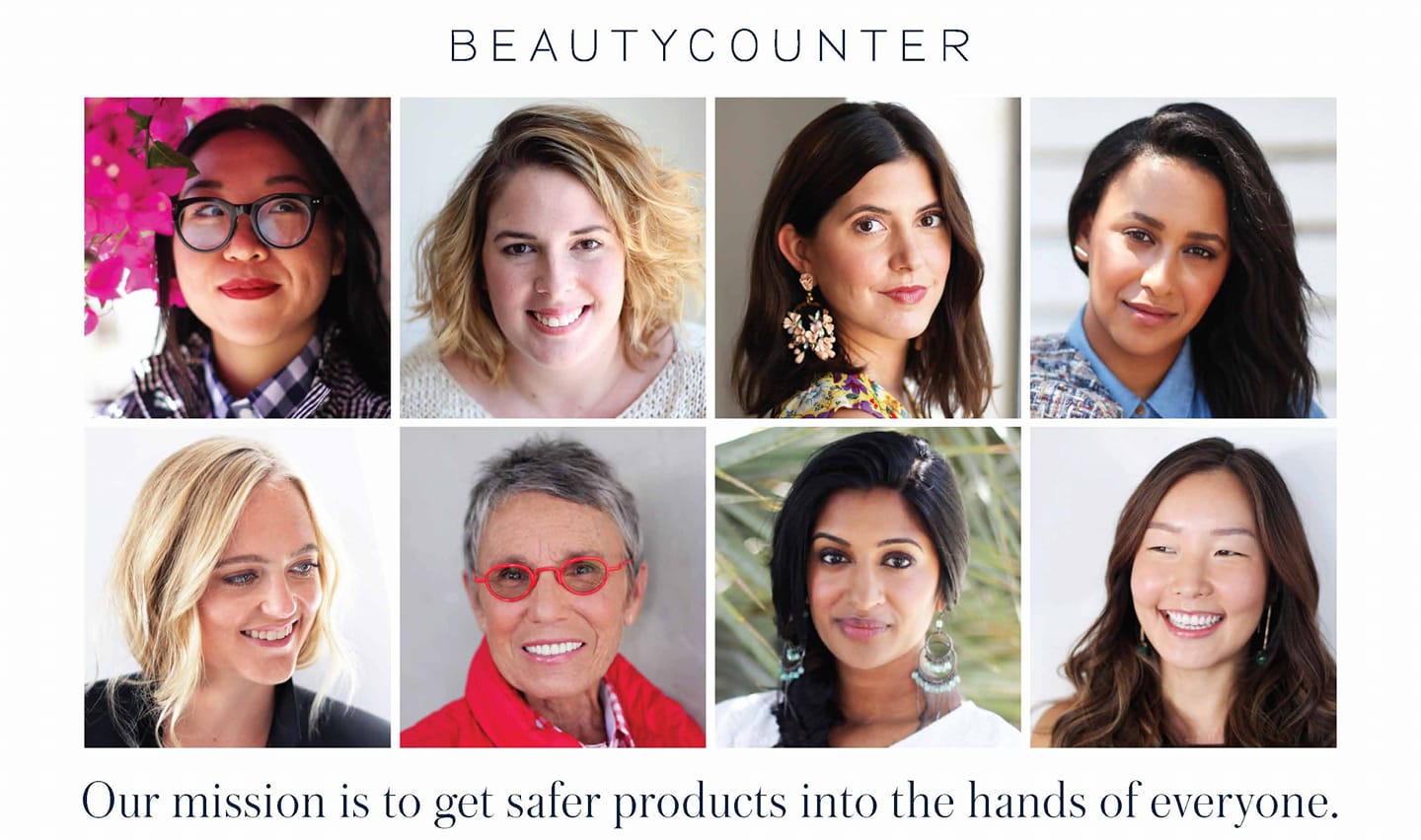 {image description: text says "beauty counter, our mission is to get safer products into the hands of everyone" with 8 photos of women of varying ages and backgrounds}