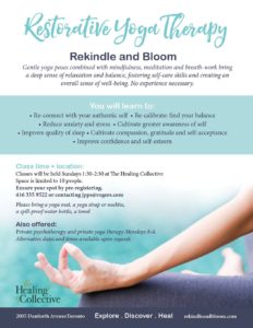 Focus is on reconnecting to the body through slow mindful movement and stretches. Also may include a combination of any of the following: mantras, visualization, meditation, and different types of pranayama (breath work). 5 classes for $100, please contact Joanna to enrol.