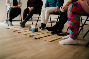An 8 week support group for parents of school-aged children. We will provide a safe space to explore our own responses to parenting challenges, gain skills, and build connection and resilience. Topics will include: brain basics, emotion-regulation, guiding behaviours, mindfulness, self-compassion, acceptance and change. Facilitated by Yzobela Hyett. Learn more about Parenting with Connection here or email or email info@parentingwithconnection.com. Monday evenings, 7:00-8:30pm $200/per person Nov 11th- Jan 13th {image description: feet of people sitting in chairs in a row}